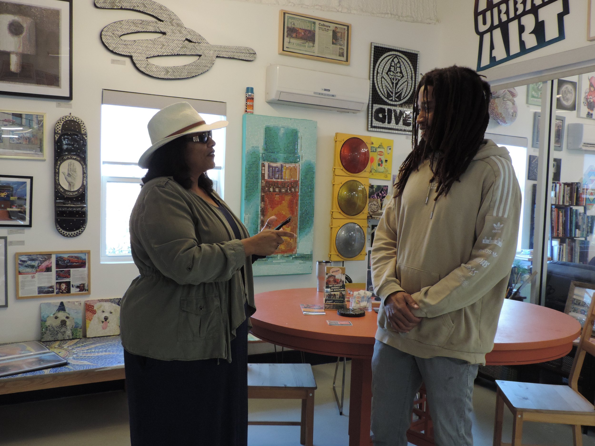 The studio conversation drifted—naturally—into memory, family, and perspective. Pittman spoke thoughtfully about how art allows space for multiple truths to coexist. The same person, the same place, the same story can be seen entirely differently depending on who’s looking.